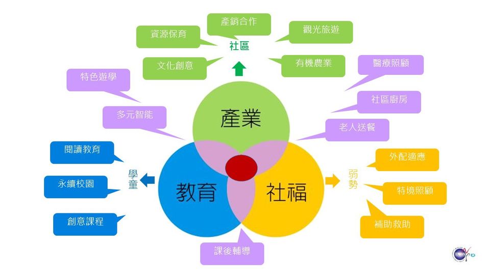 政大NPO- EMBA平台連結企業與社會各方資源,雖已有教育、產業及社福三個環節之策略想像,但在資源有限之下並無法同時啟動。因此,選擇以「教育創新」為起點,與在地夥伴合作,以學童課後照顧陪伴及輔導為槓桿支點,一步一步構築在地工程。